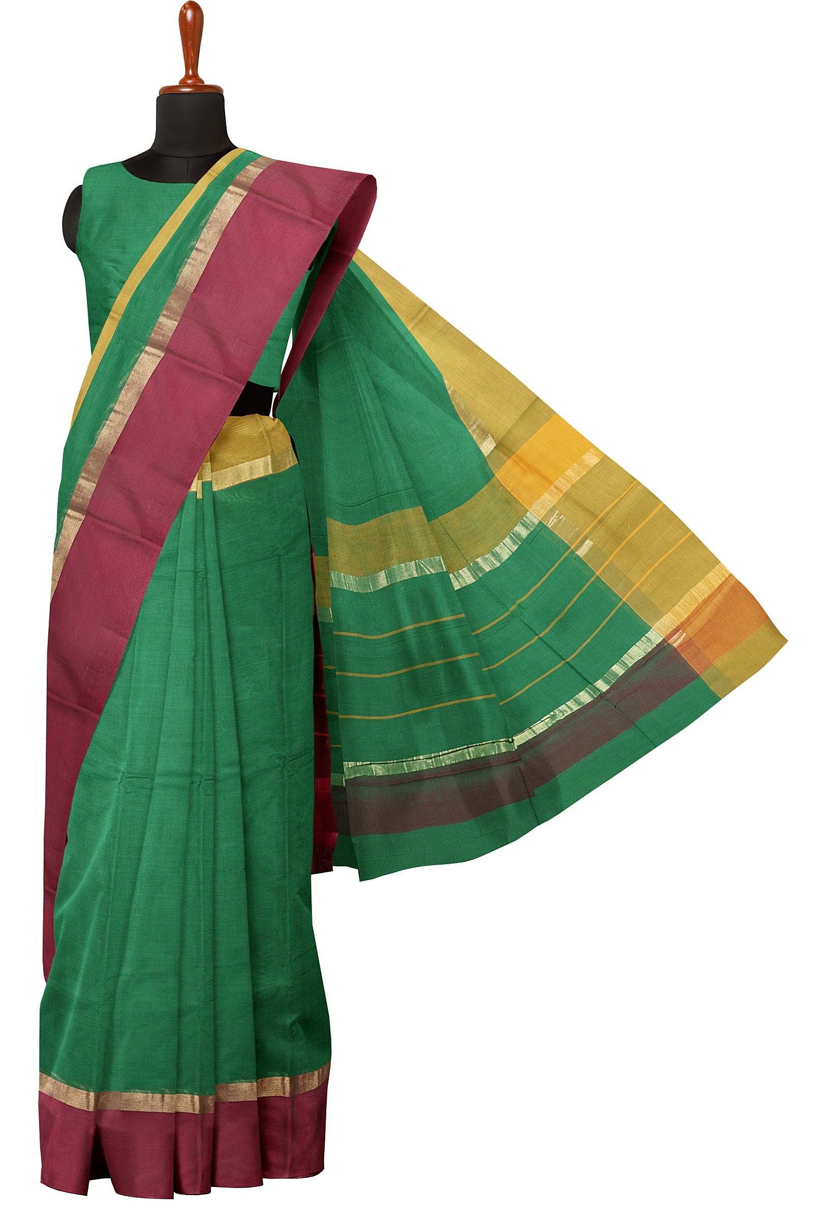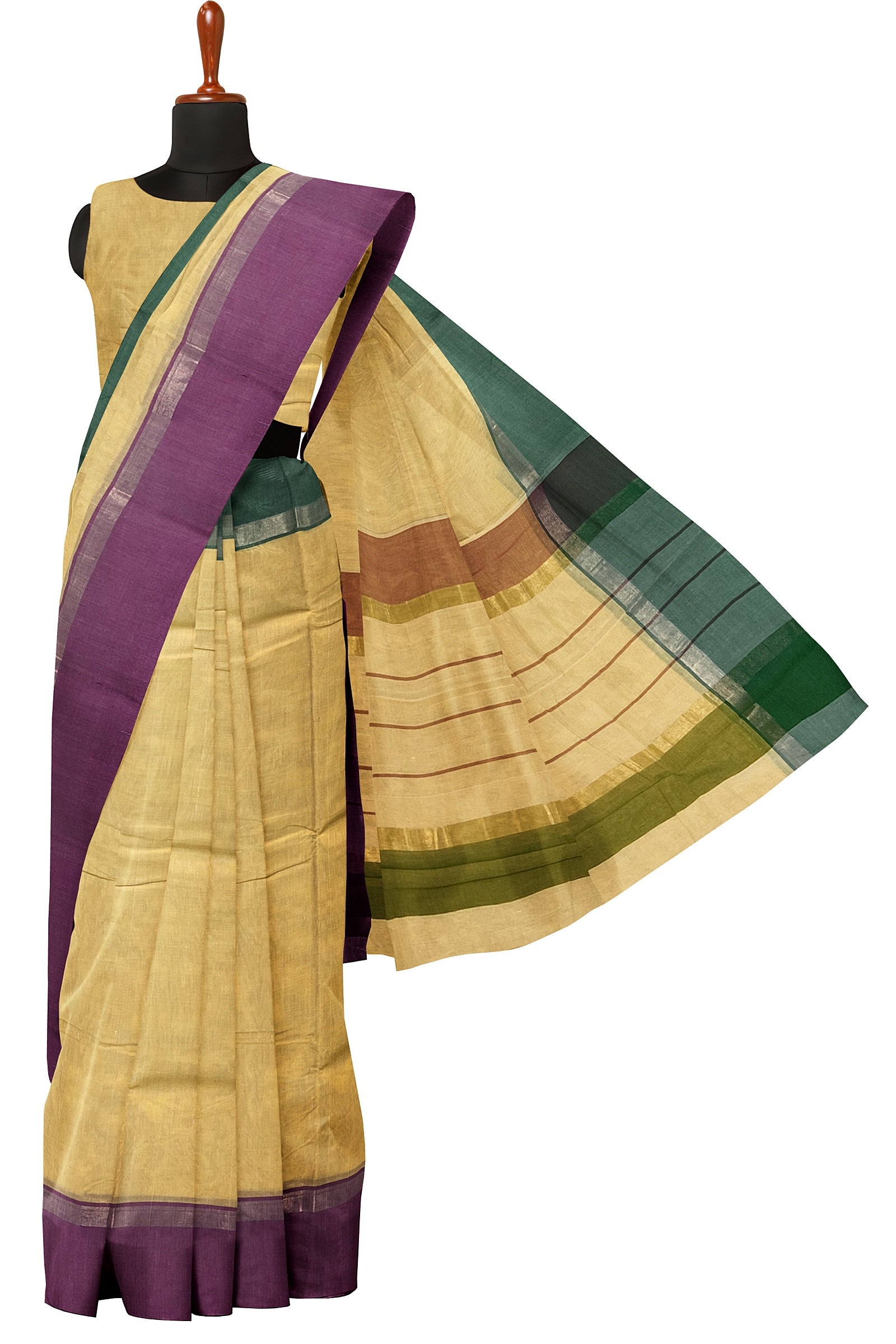 - Saree Details : Pallu – Seer Pallu, Material – 100% Compact Combed Cotton, Work Type – Thread Woven Work, Cotton Thread Count – Single 80’s.