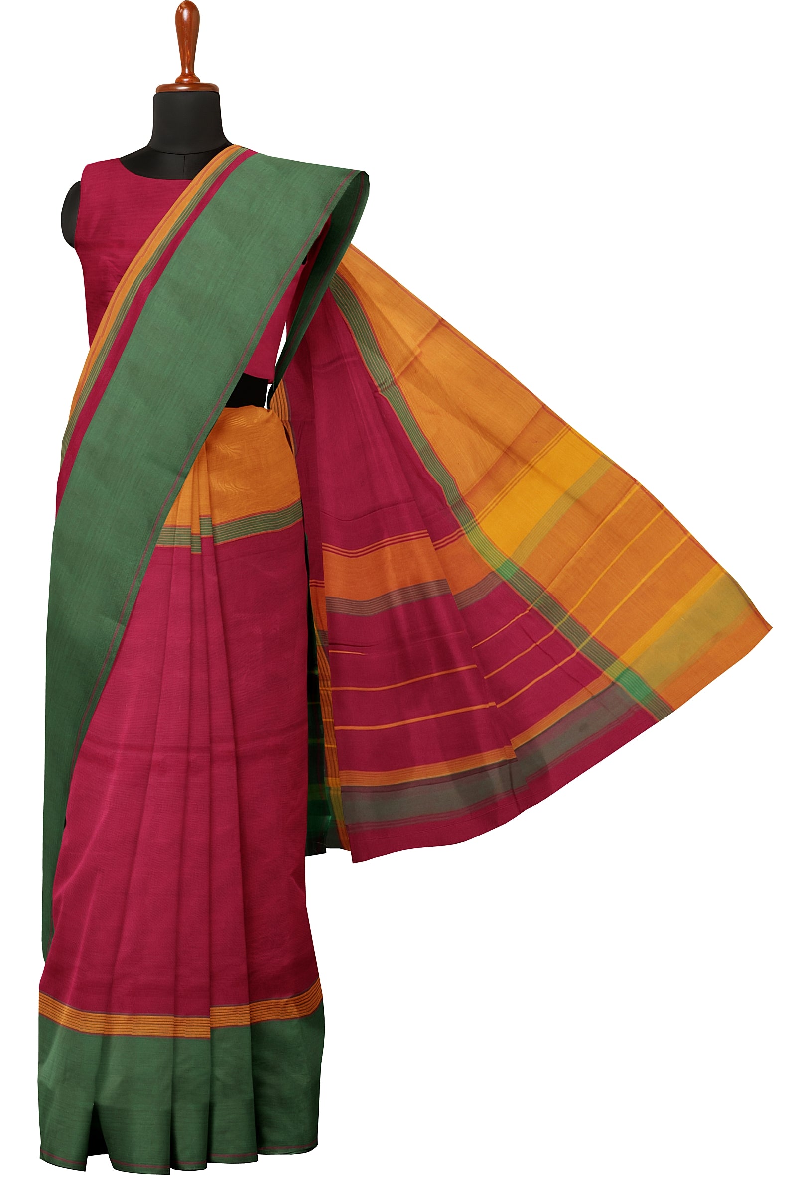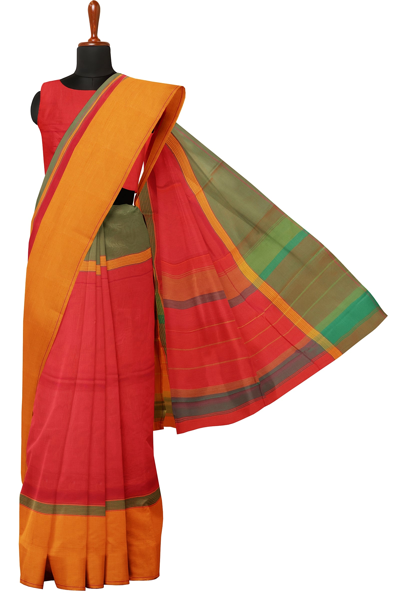 - Saree Details : Pallu – Seer Pallu, Material – 100% Compact Combed Cotton, Work Type – Thread Woven Work, Cotton Thread Count – Single 80’s.