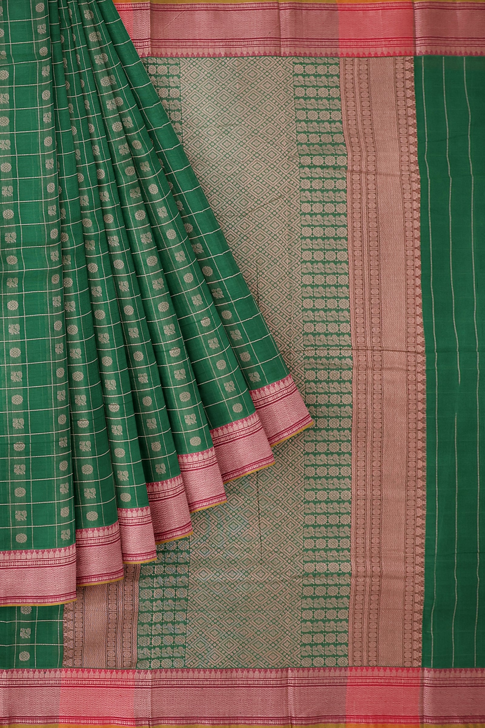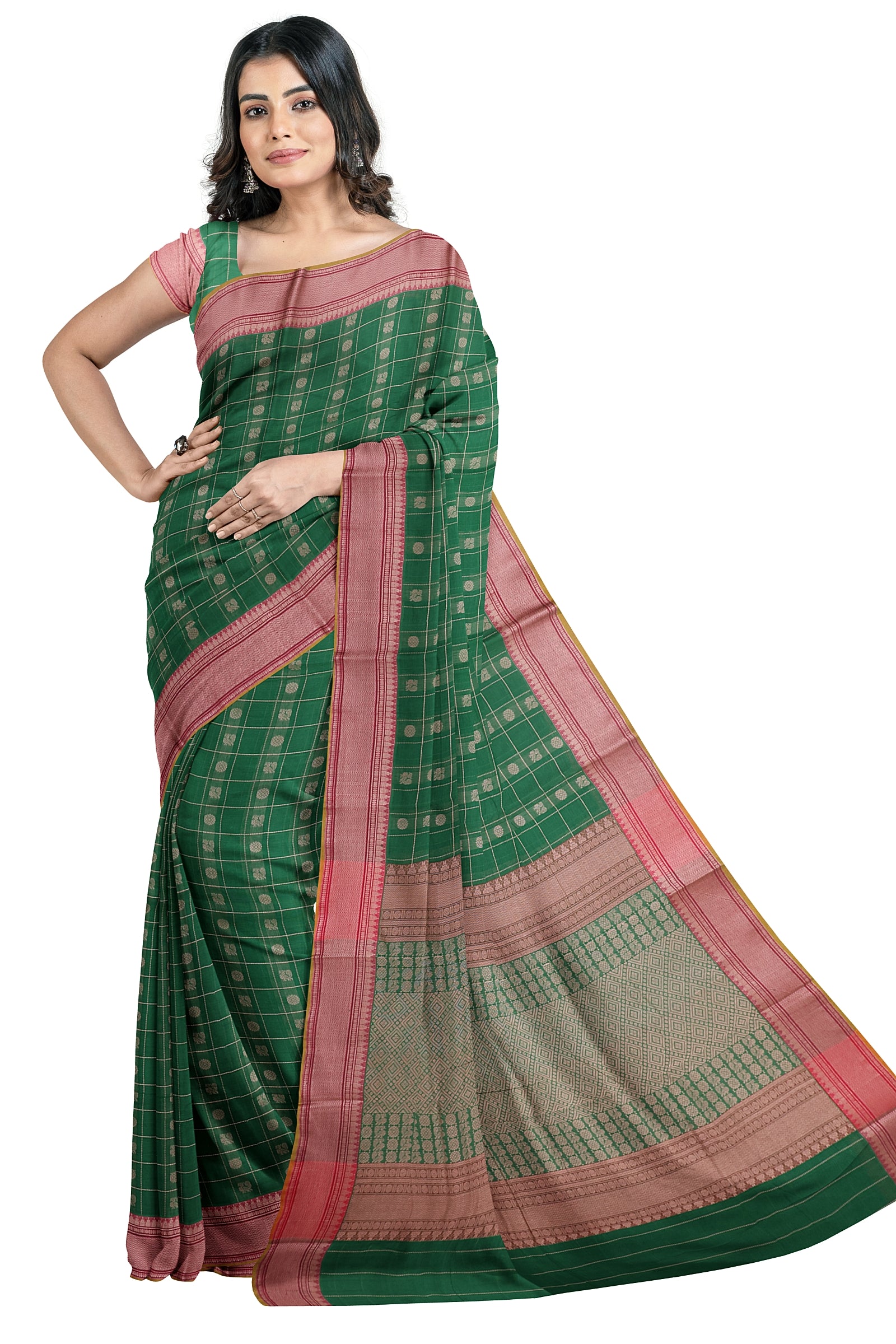 - Saree Details : Pallu – Rich Pallu, Material – 100% Compact Combed Cotton, Work Type – Thread Woven Work, Cotton Thread Count – Single 100’s.