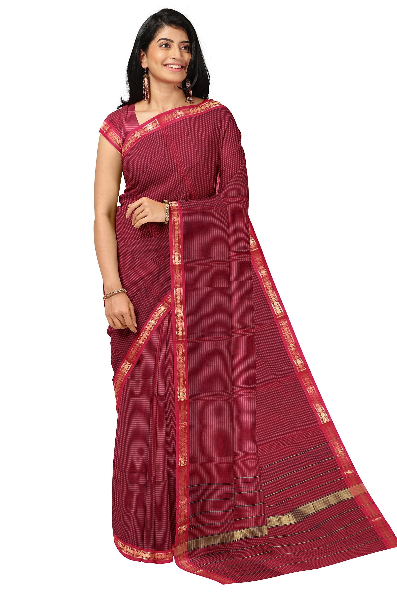 - Saree Details : Pallu – Seer Pallu, Material – 100% Compact Combed Cotton, Work Type – Thread Woven Work, Cotton Thread Count – Single 80’s.