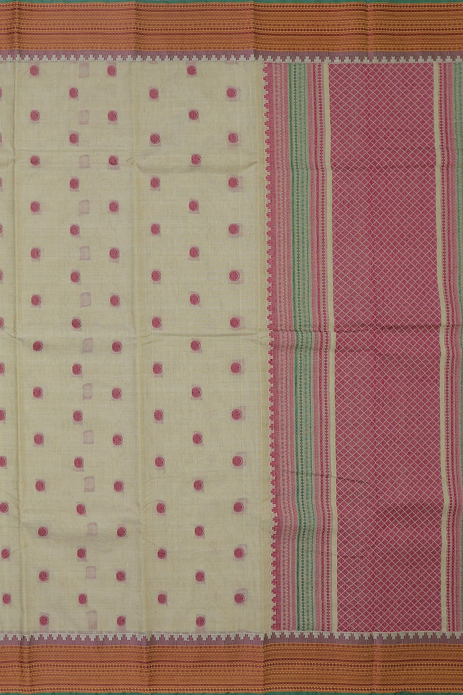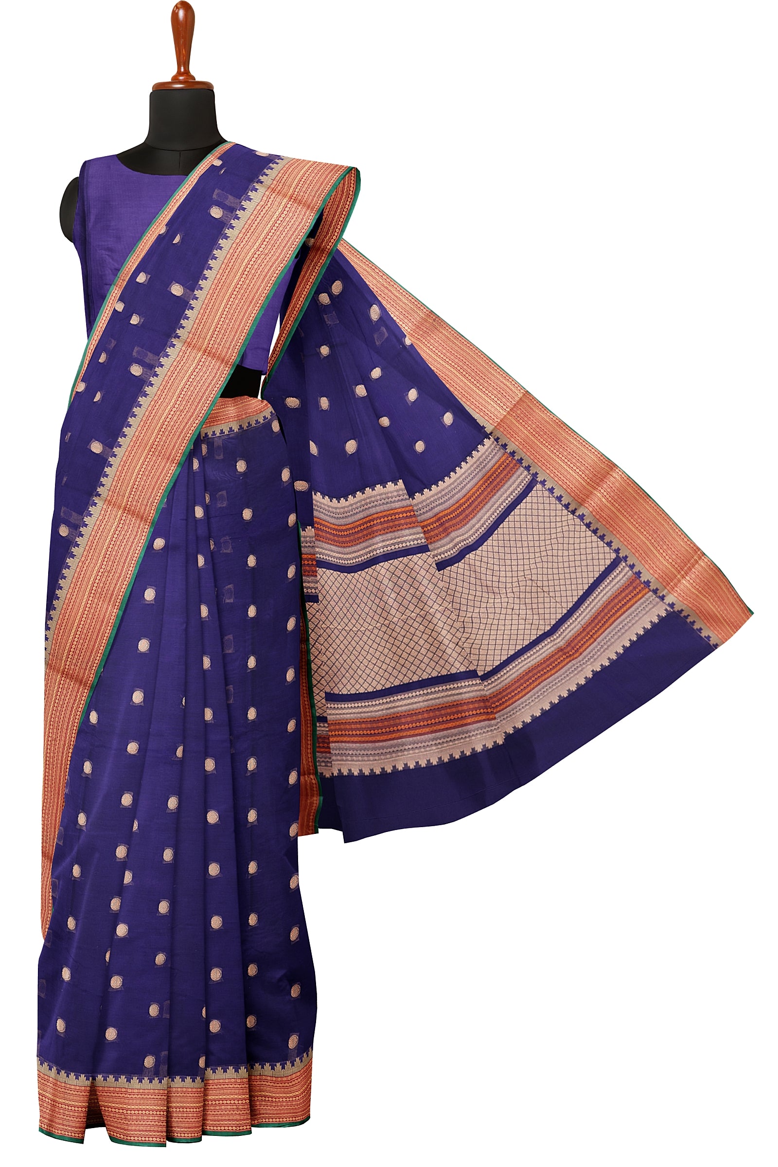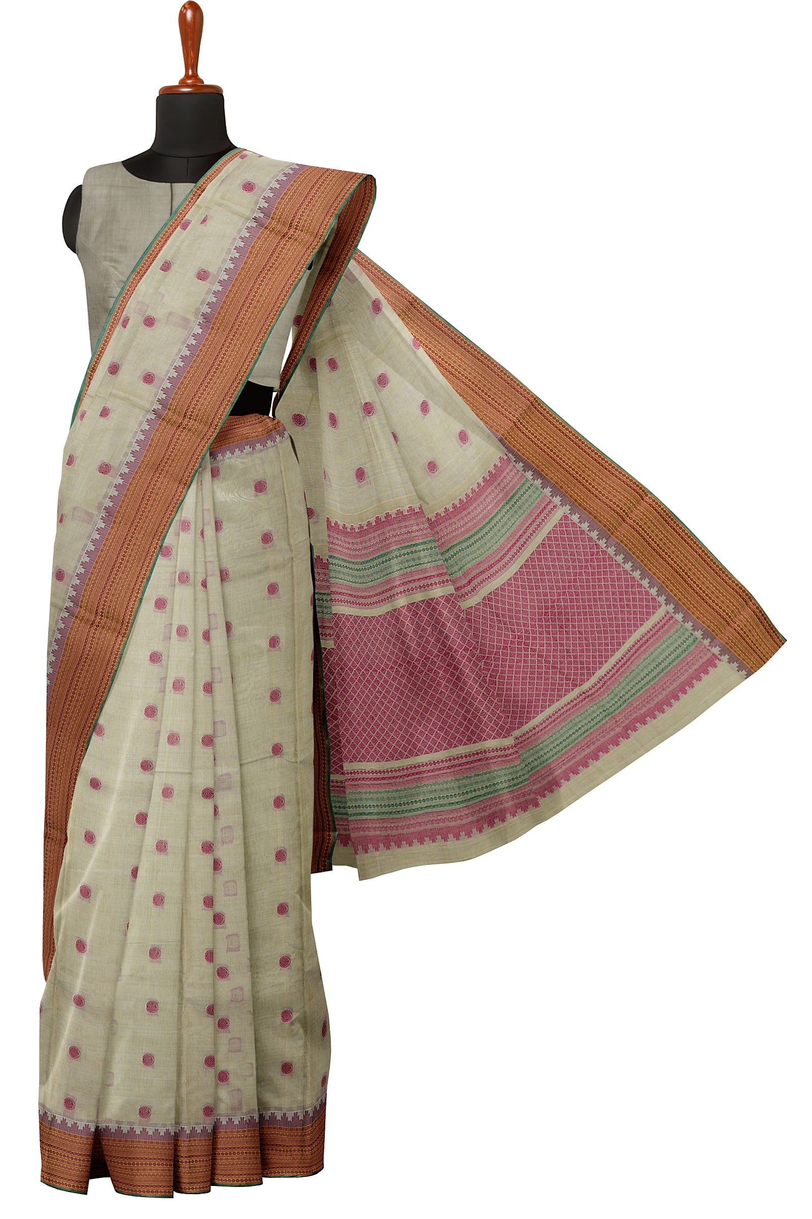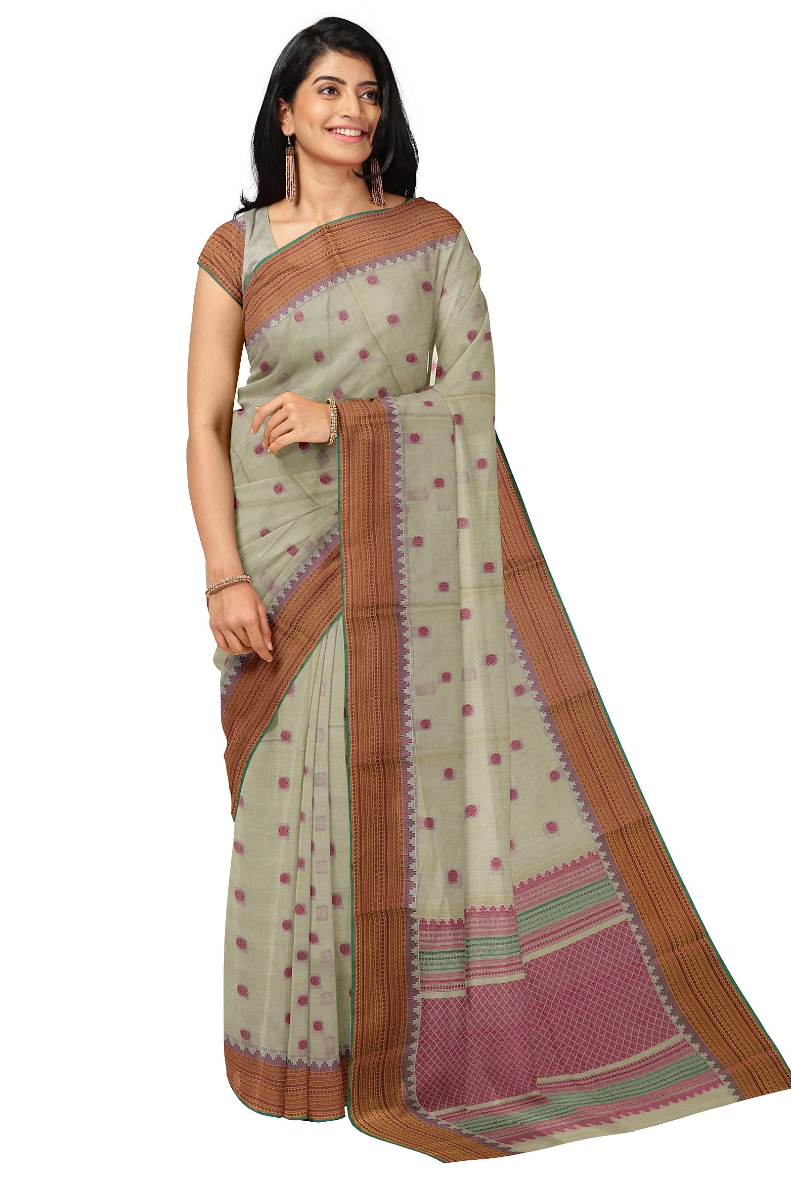 - Saree Details : Pallu – Rich Pallu, Material – 100% Compact Combed Cotton, Work Type – Thread Woven Work, Cotton Thread Count – Single 80’s.