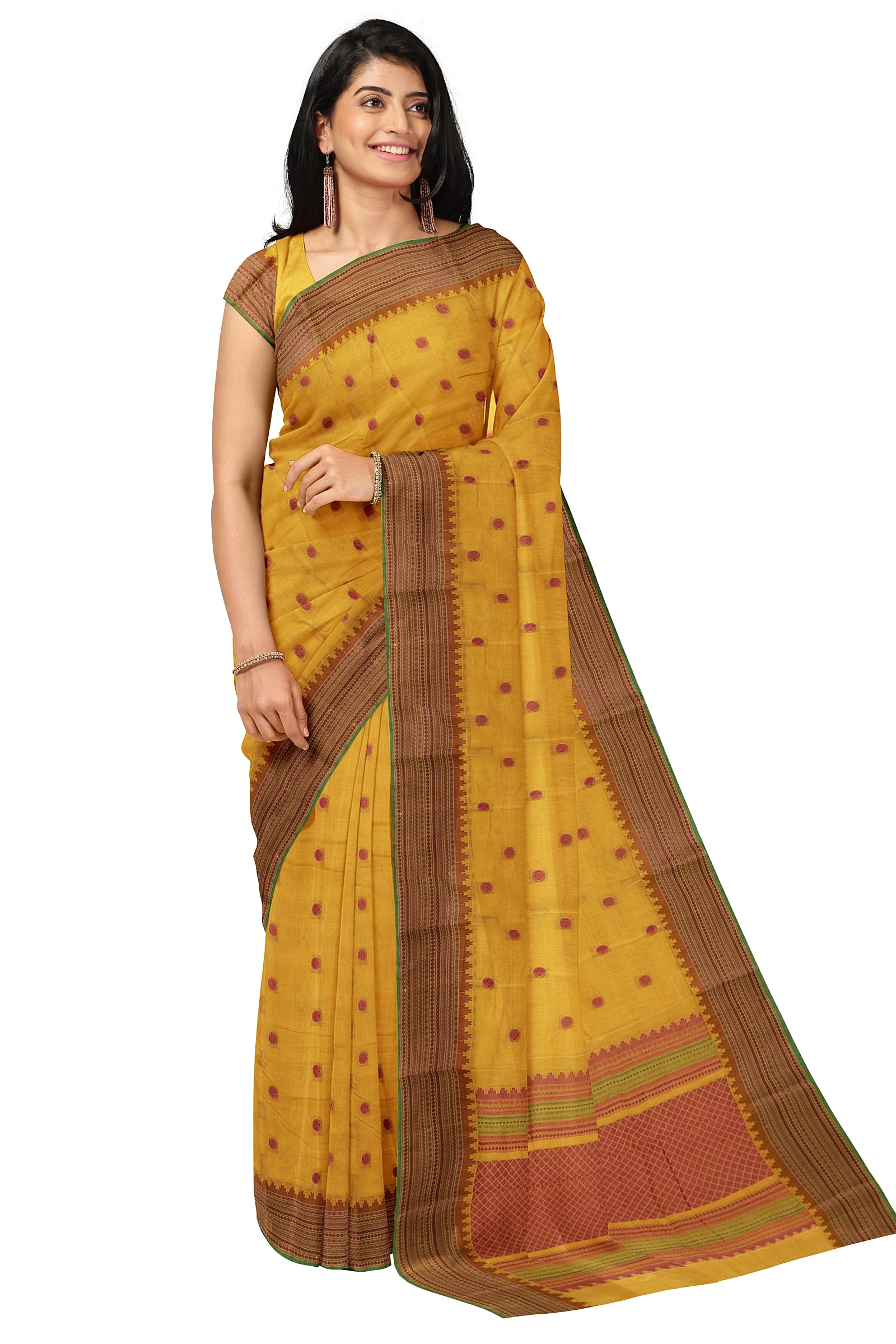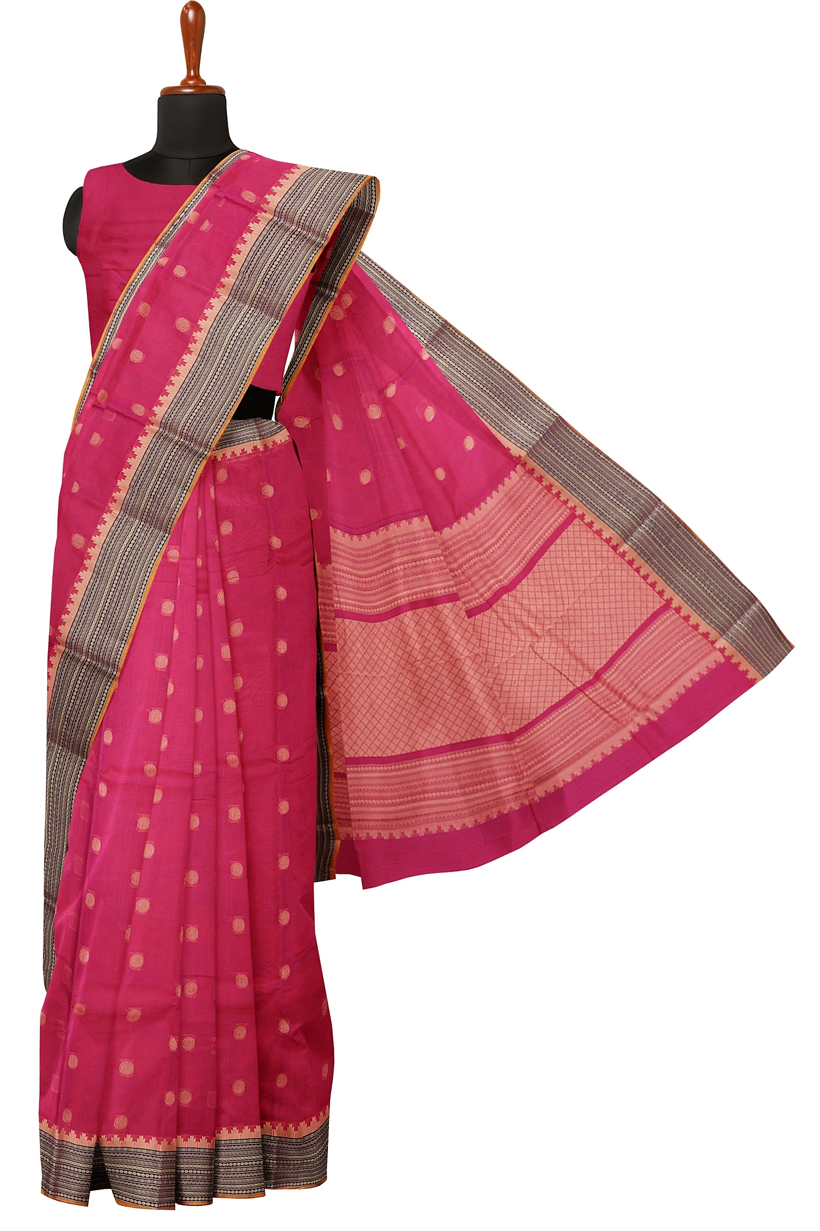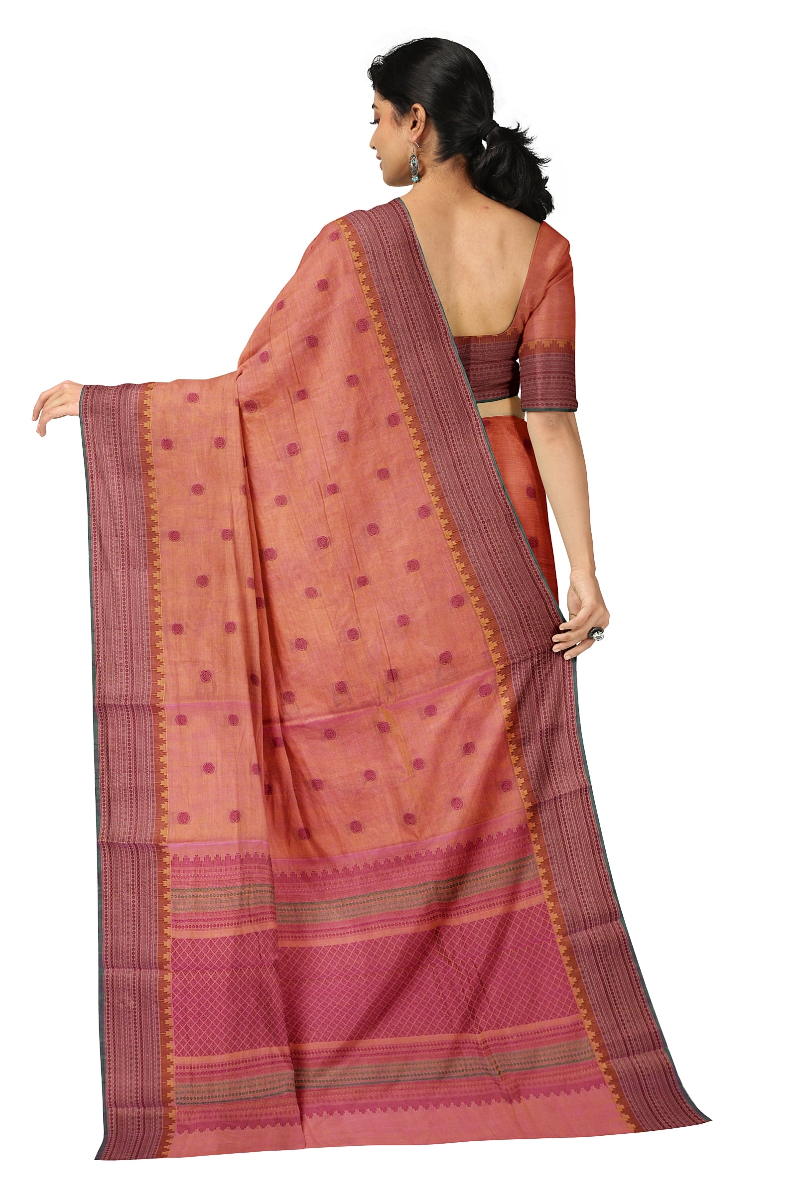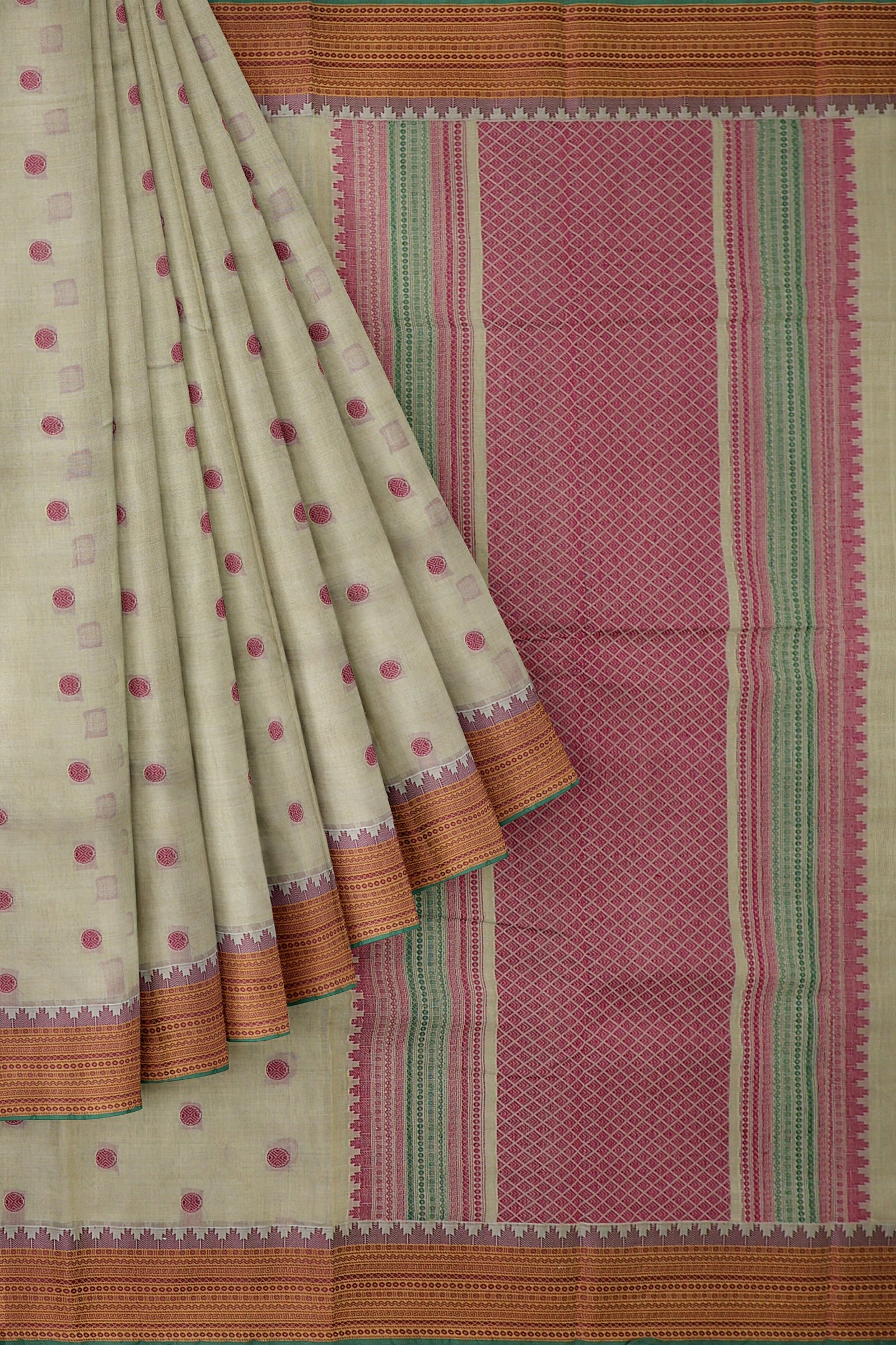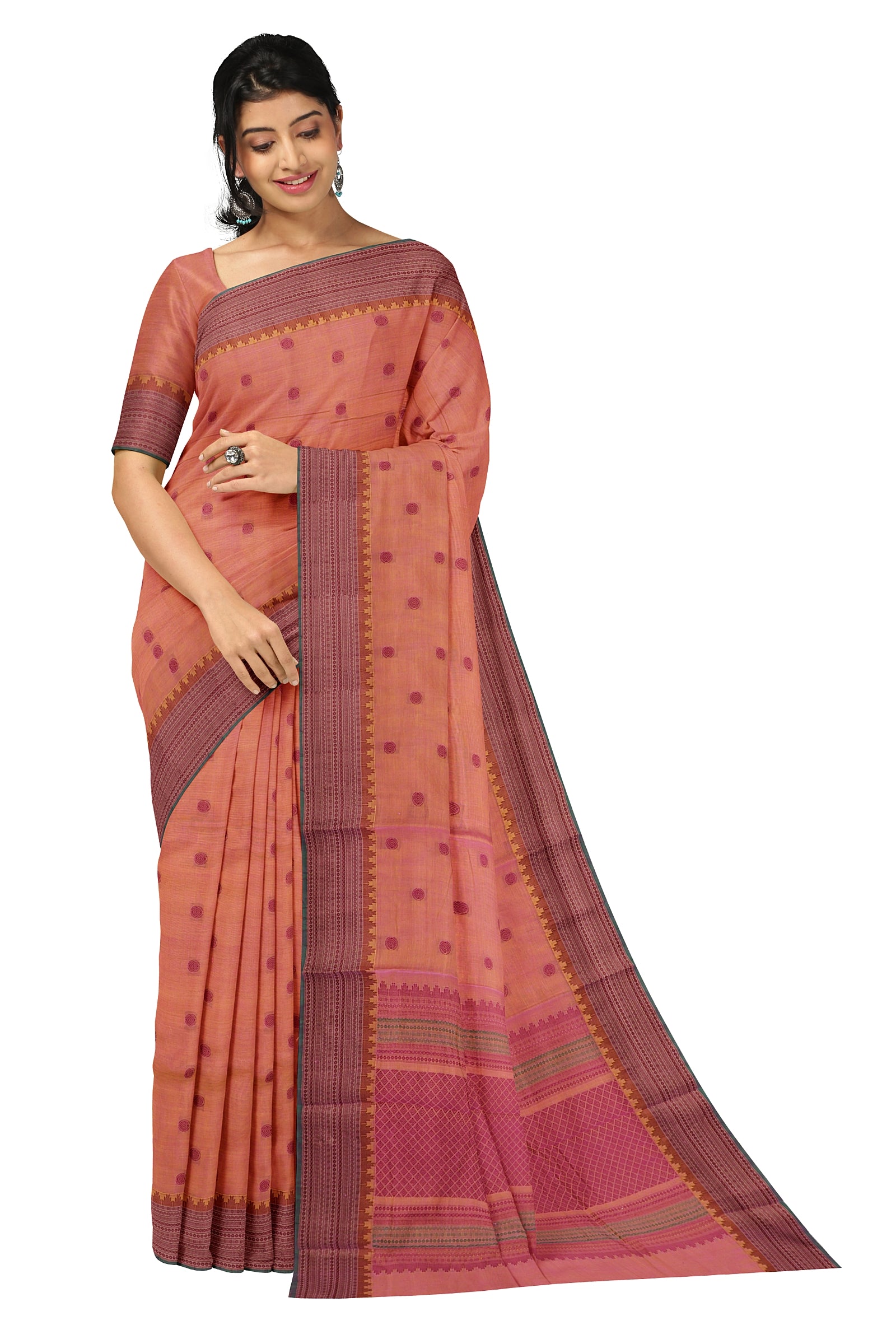 - Saree Details : Pallu – Rich Pallu, Material – 100% Compact Combed Cotton, Work Type – Thread Woven Work, Cotton Thread Count – Single 80’s.