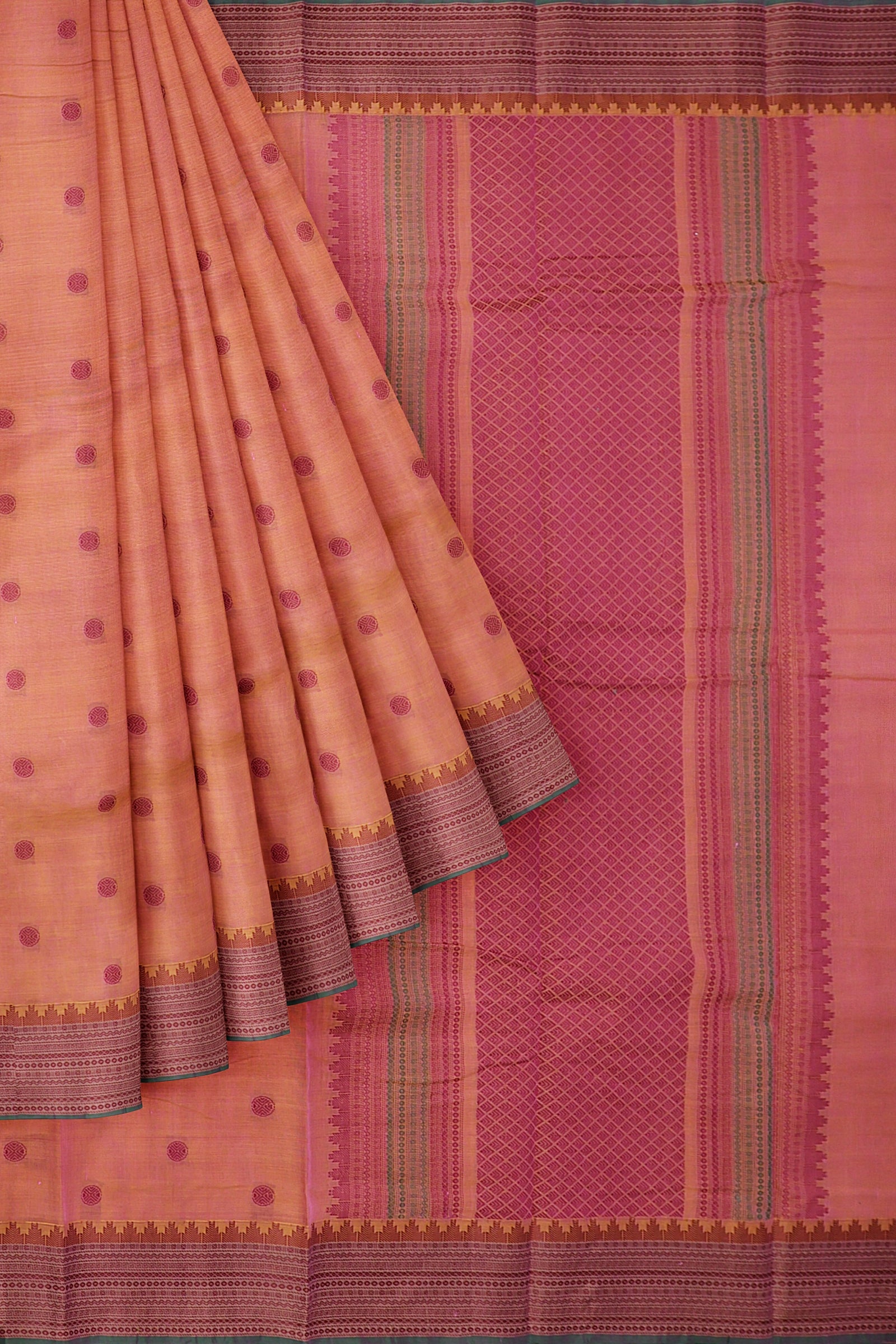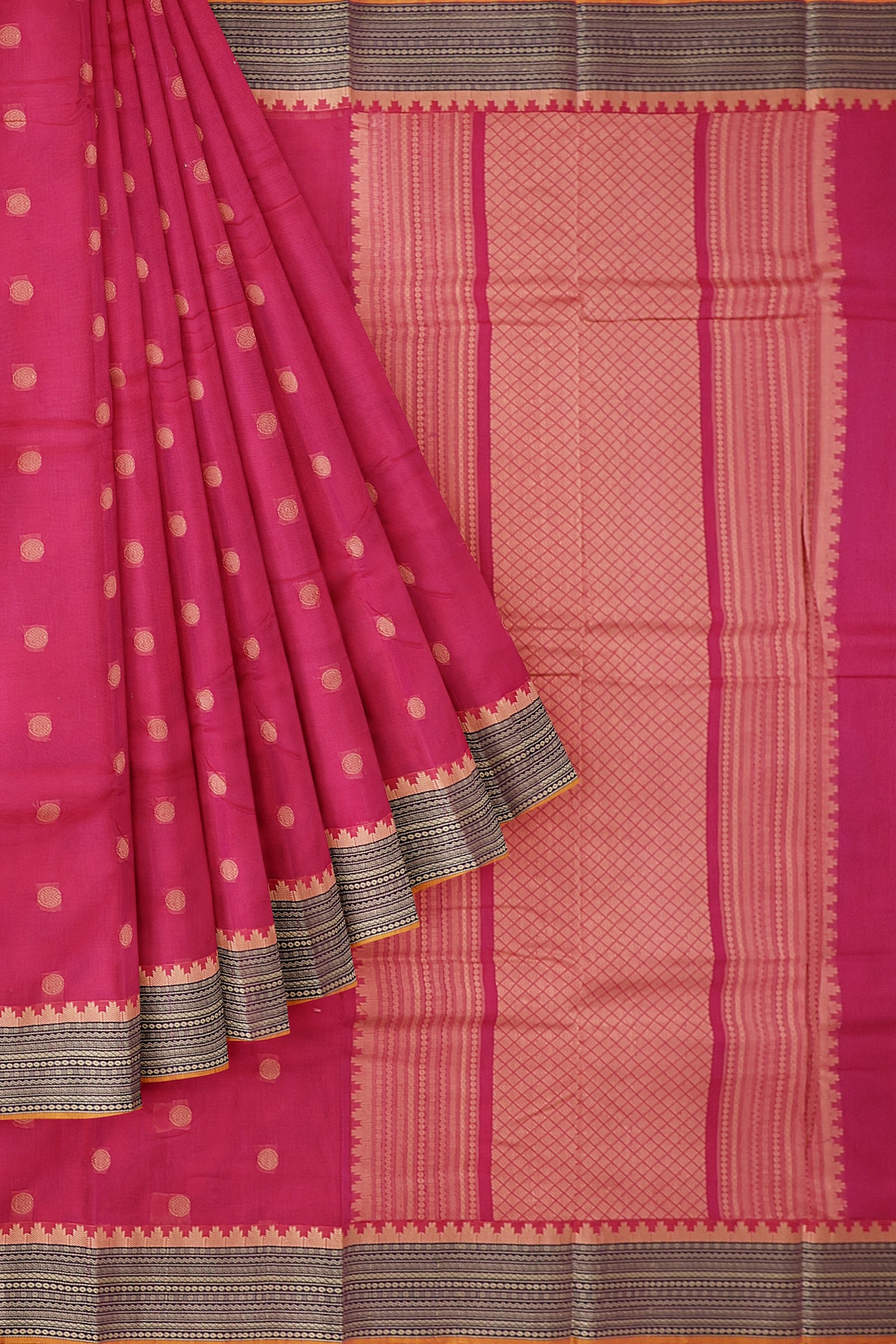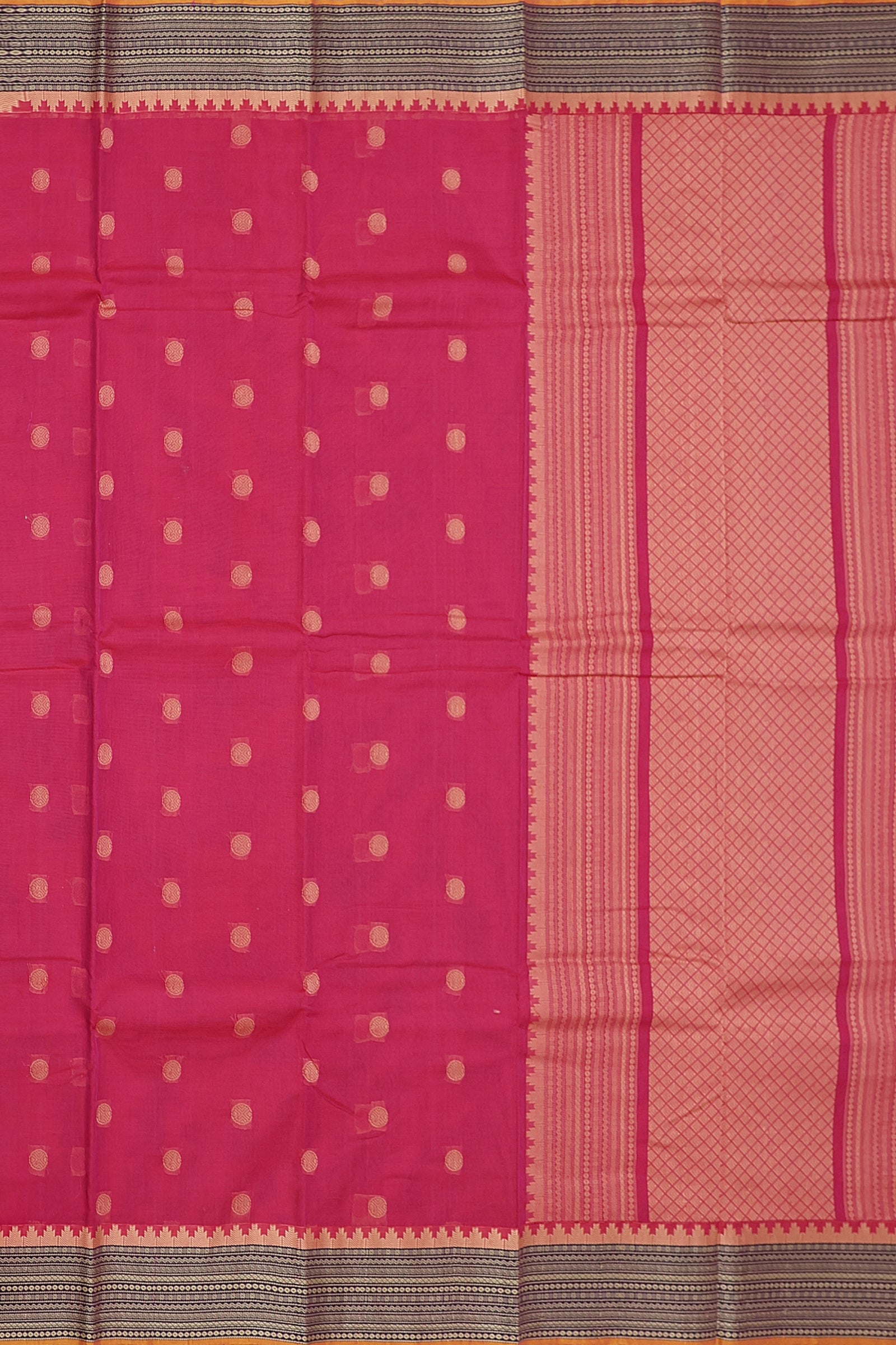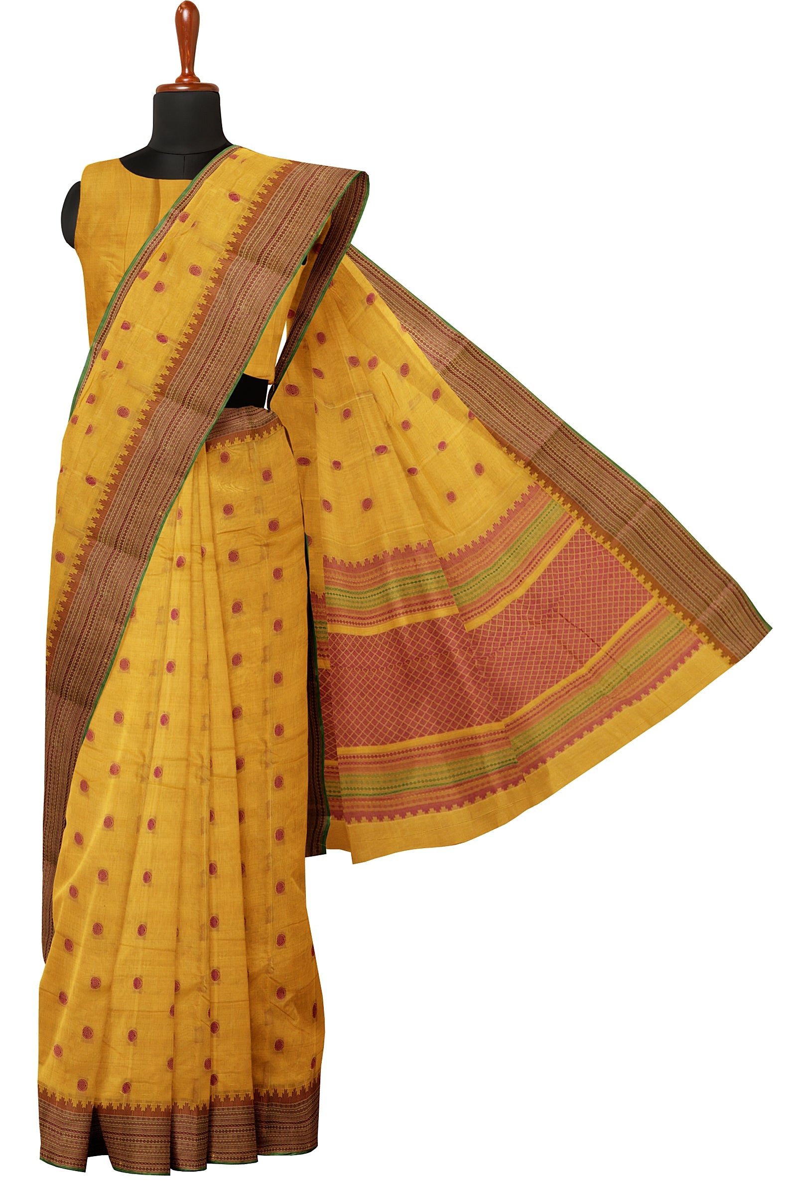 - Saree Details : Pallu – Rich Pallu, Material – 100% Compact Combed Cotton, Work Type – Thread Woven Work, Cotton Thread Count – Single 80’s.