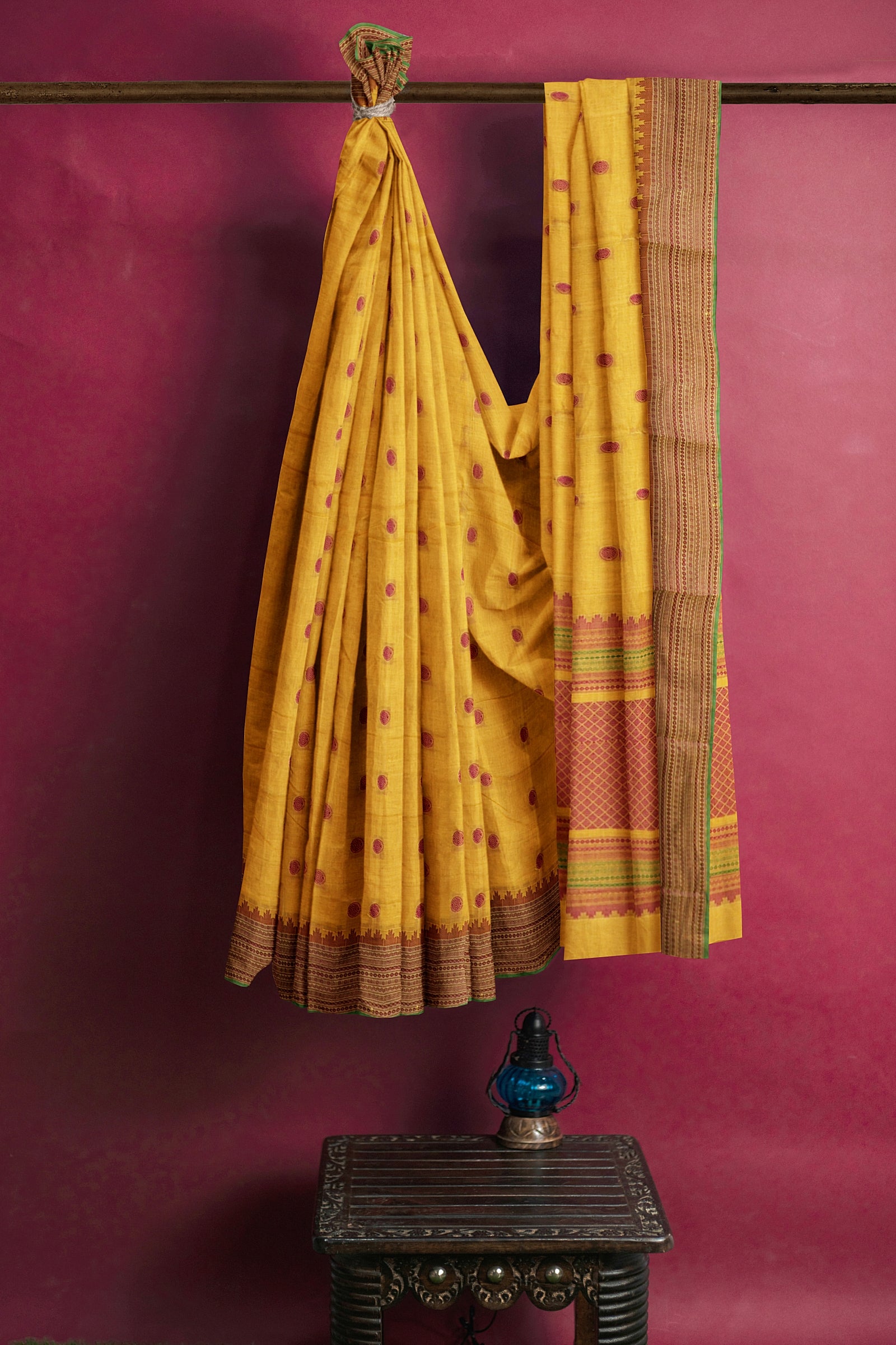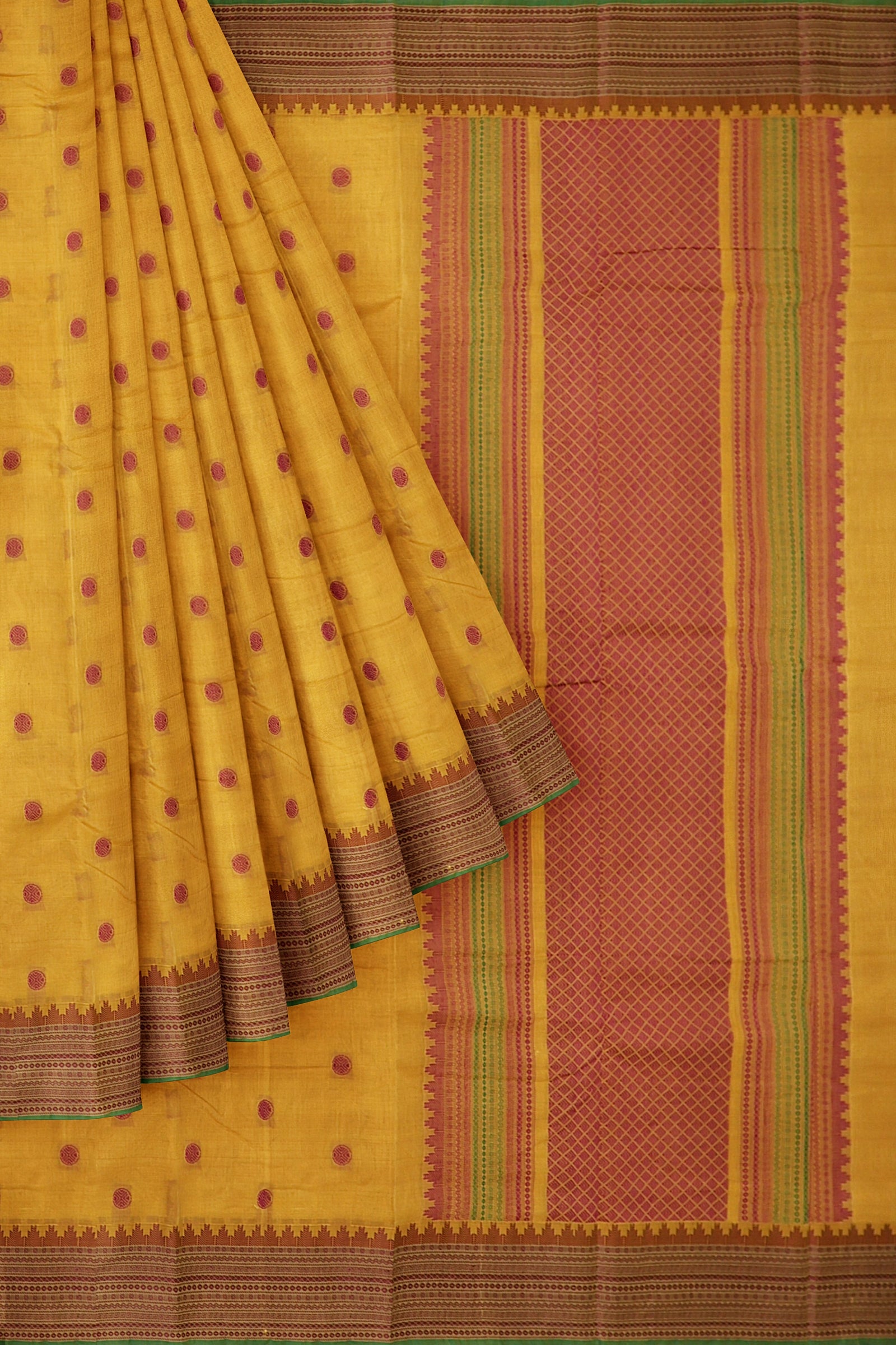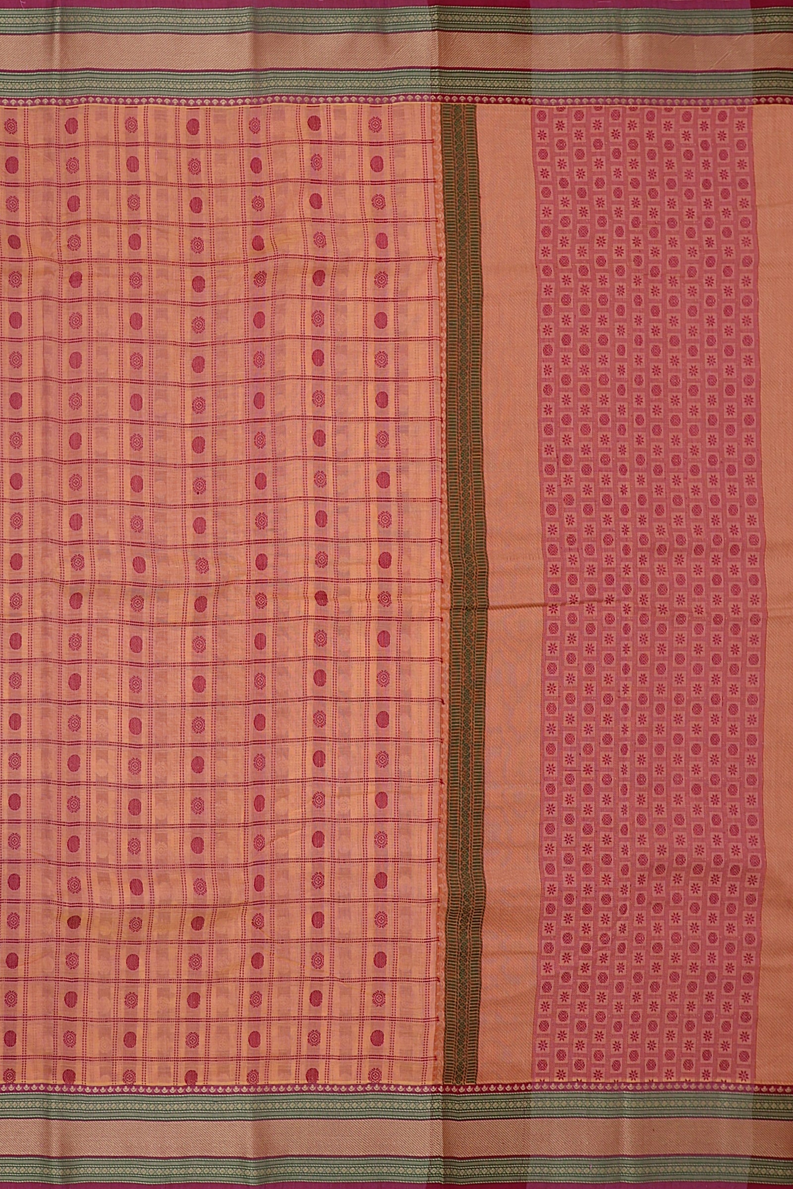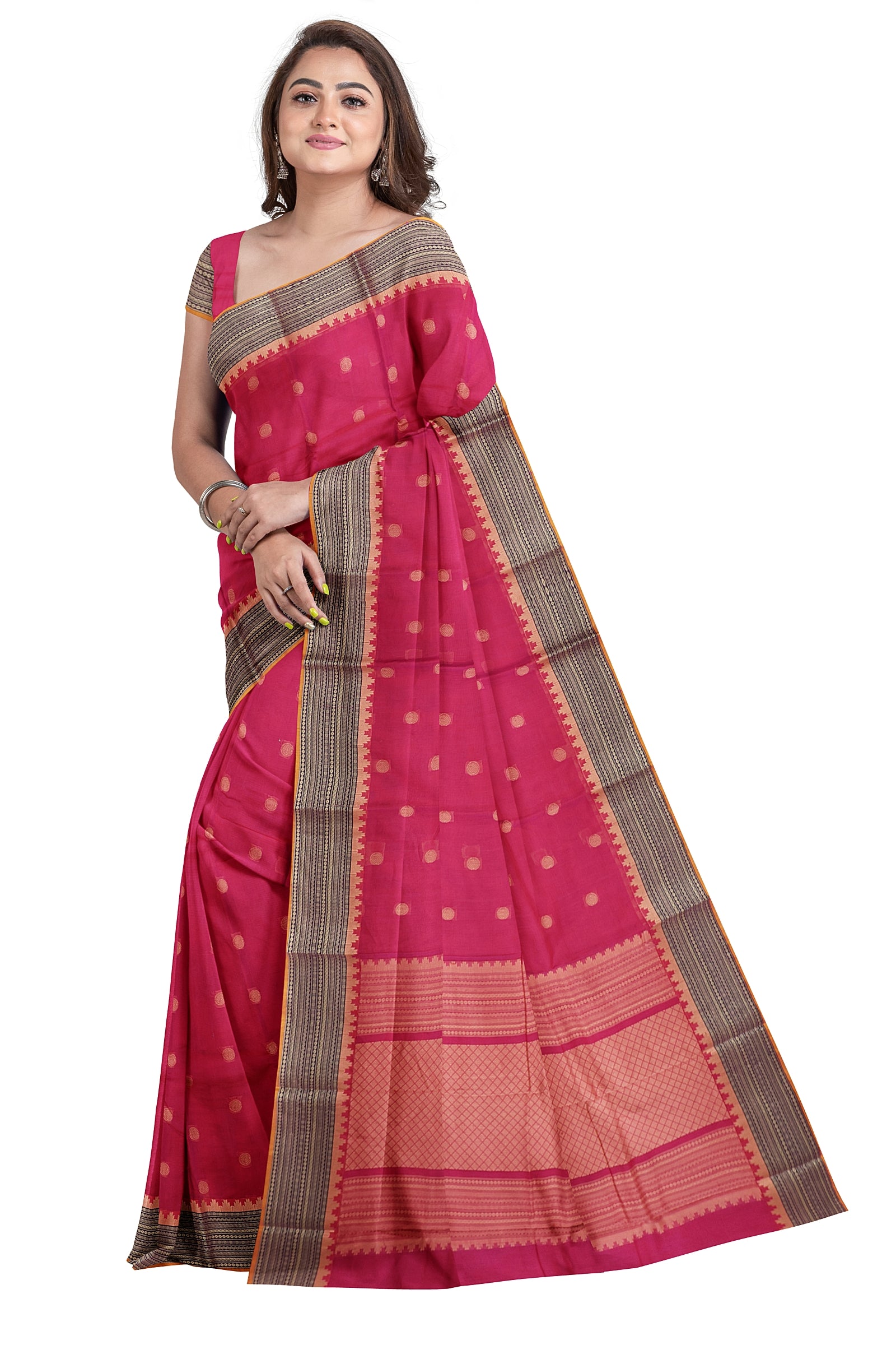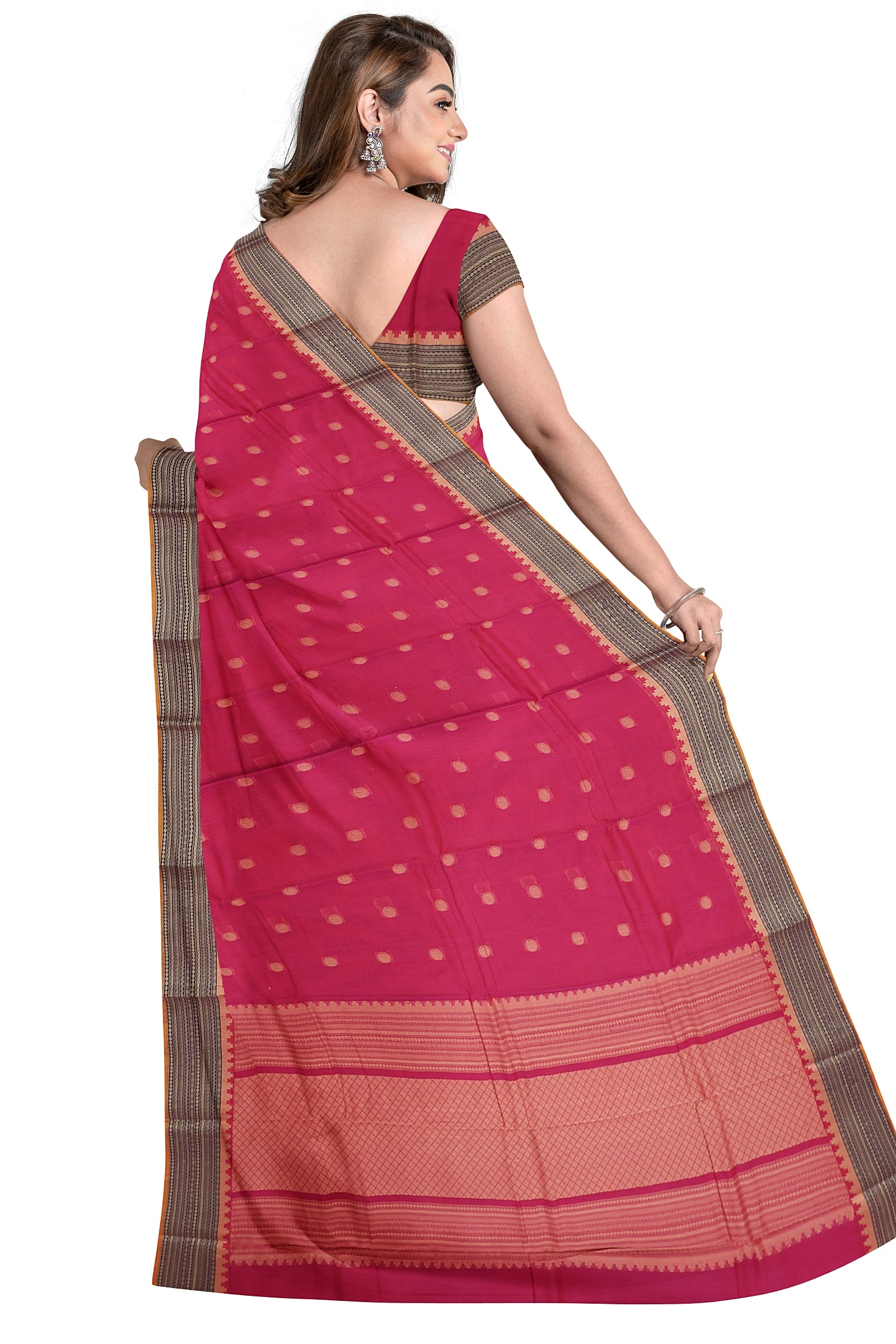 - Saree Details : Pallu – Rich Pallu, Material – 100% Compact Combed Cotton, Work Type – Thread Woven Work, Cotton Thread Count – Single 80’s.