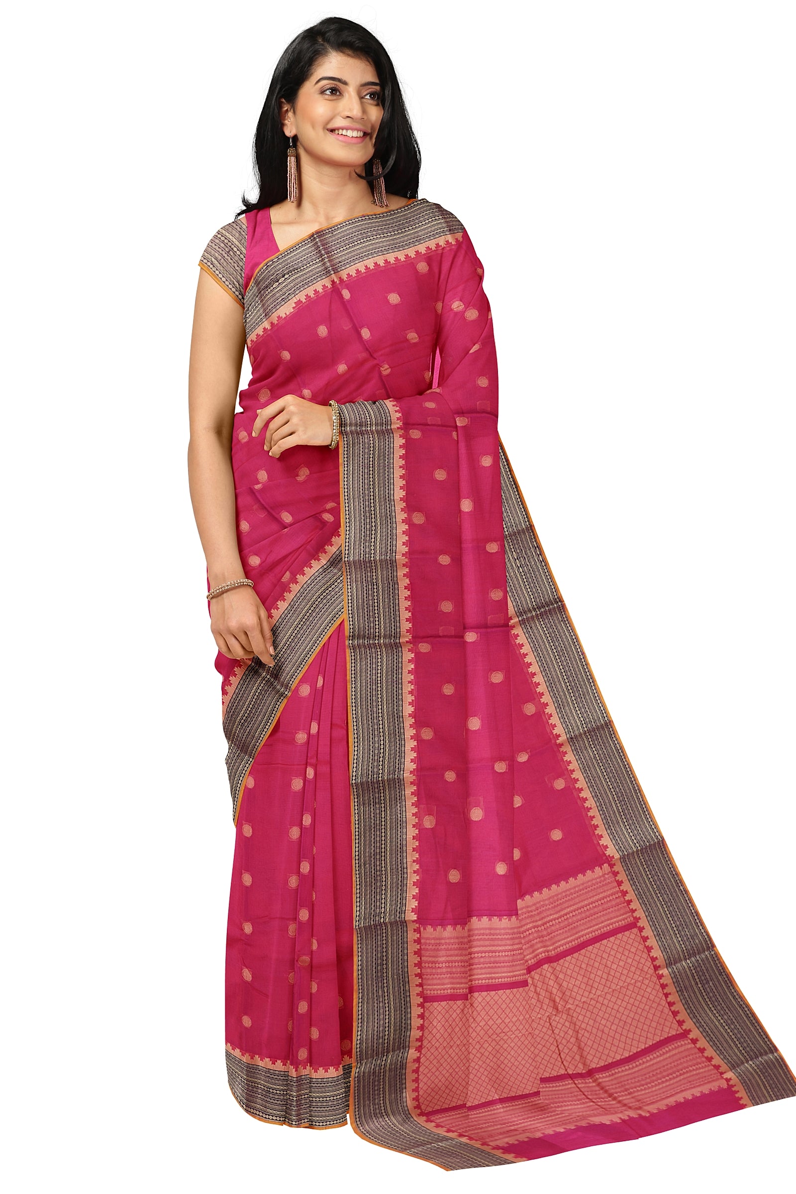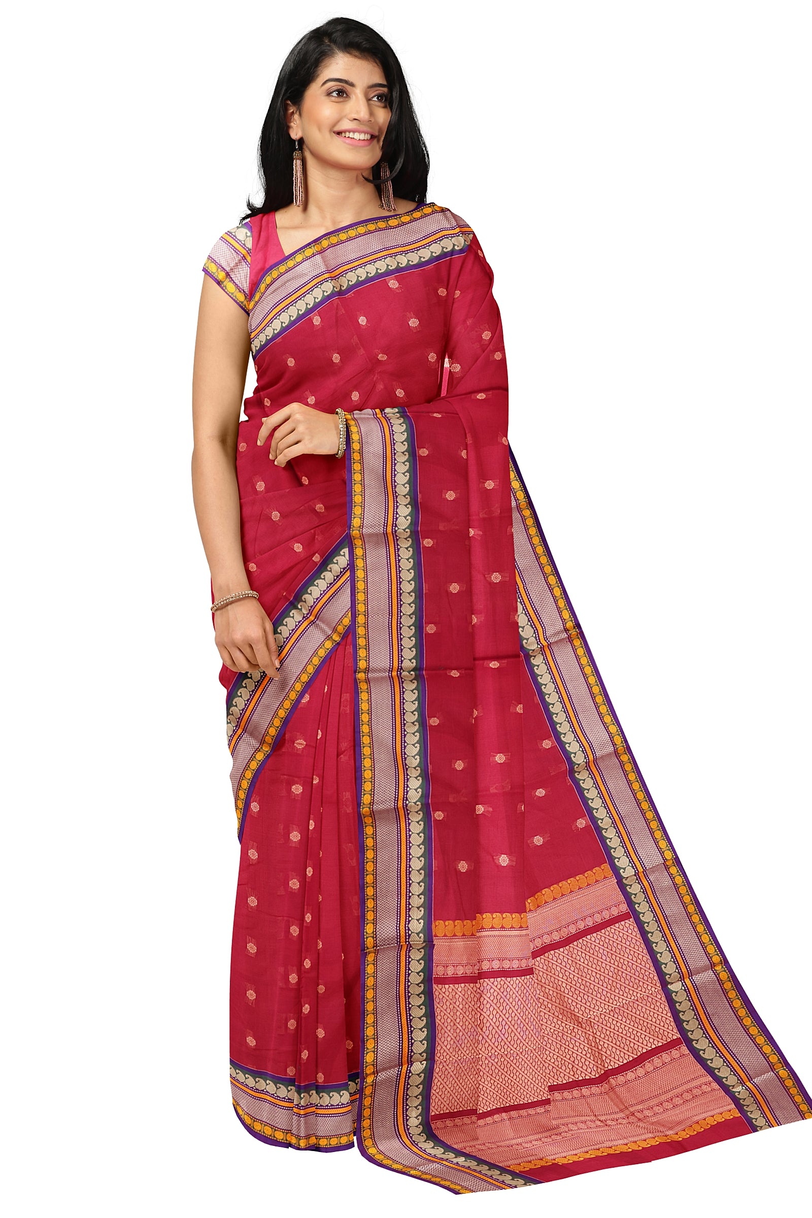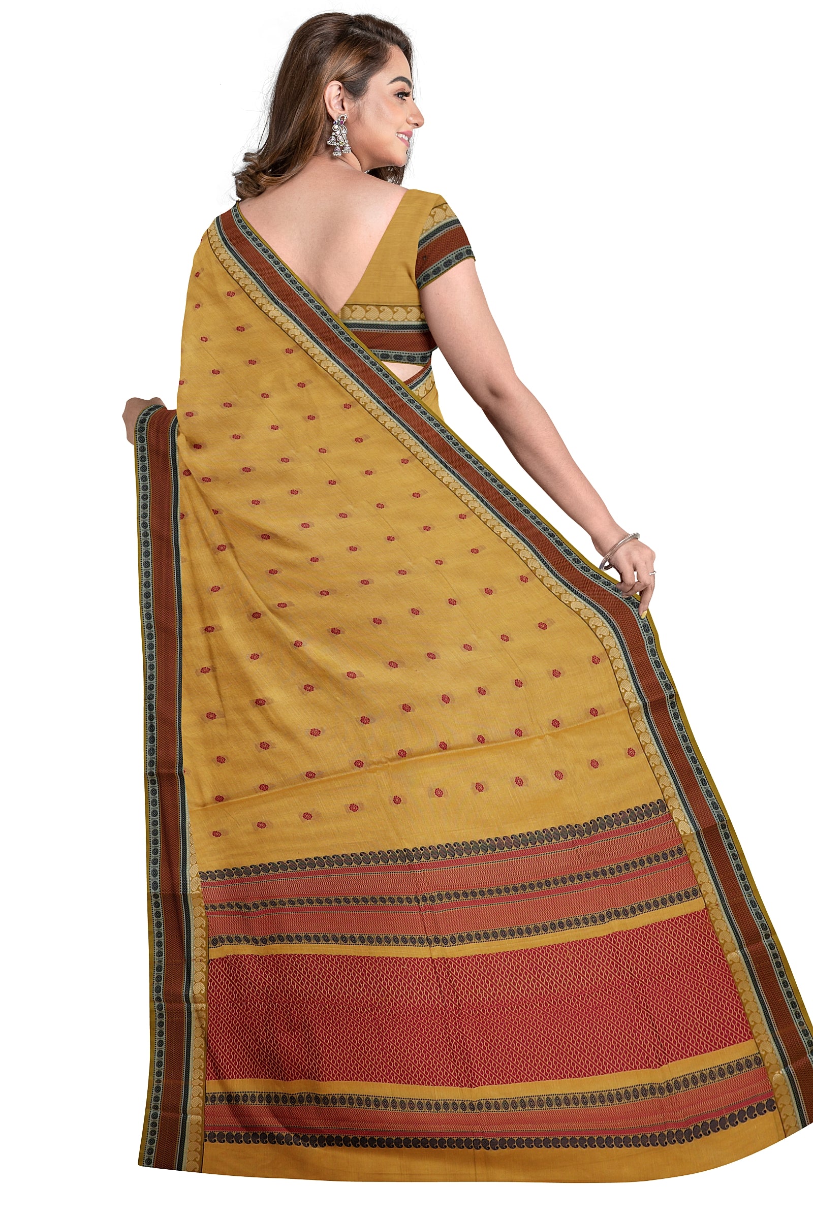 - Saree Details : Pallu – Rich Pallu, Material – 100% Compact Combed Cotton, Work Type – Thread Woven Work, Cotton Thread Count – Single 80’s.