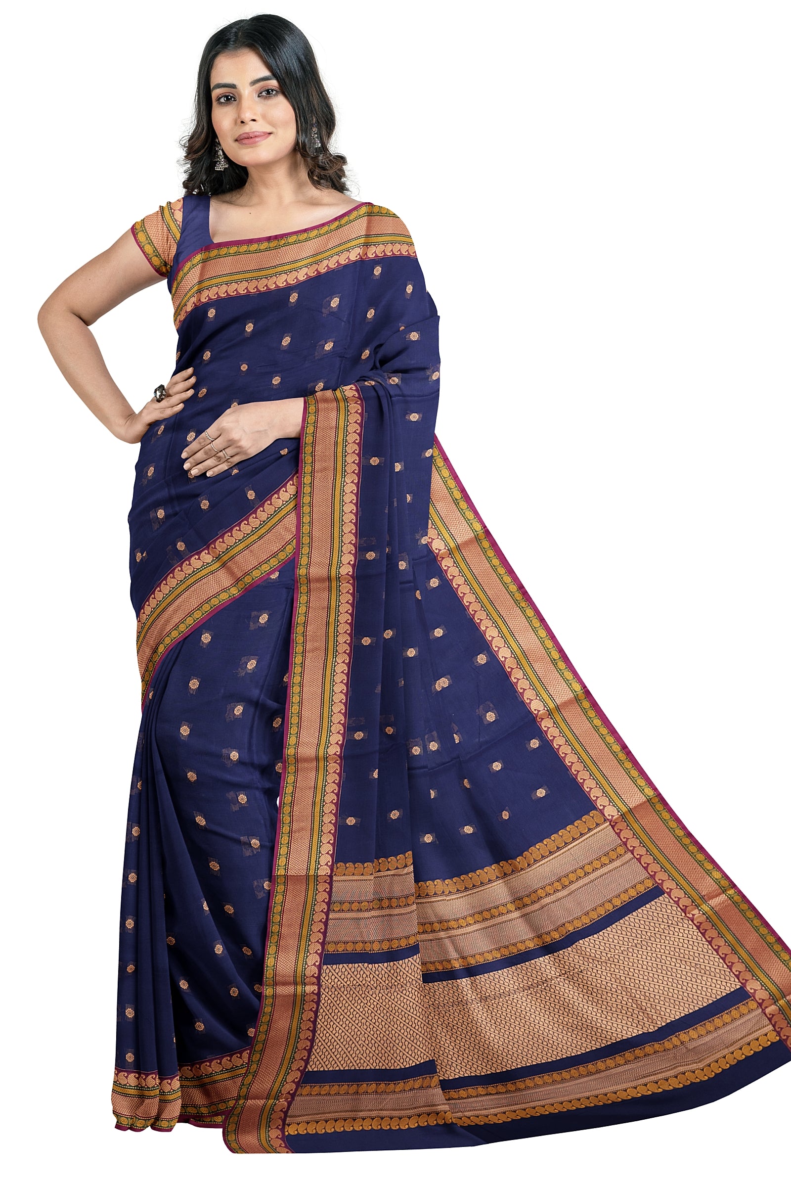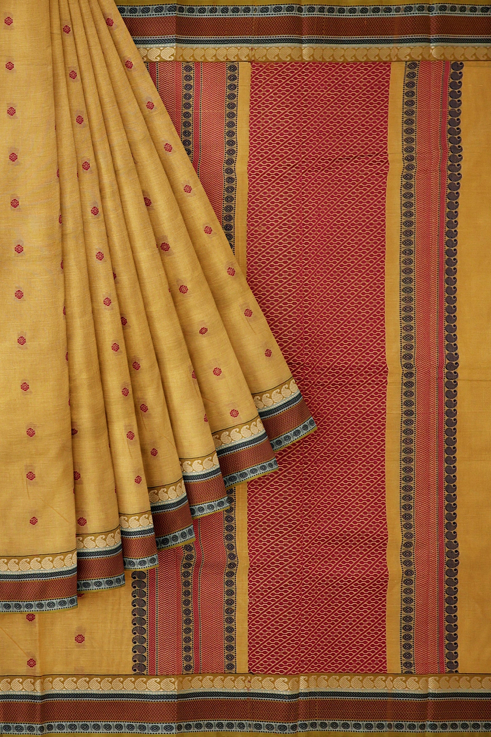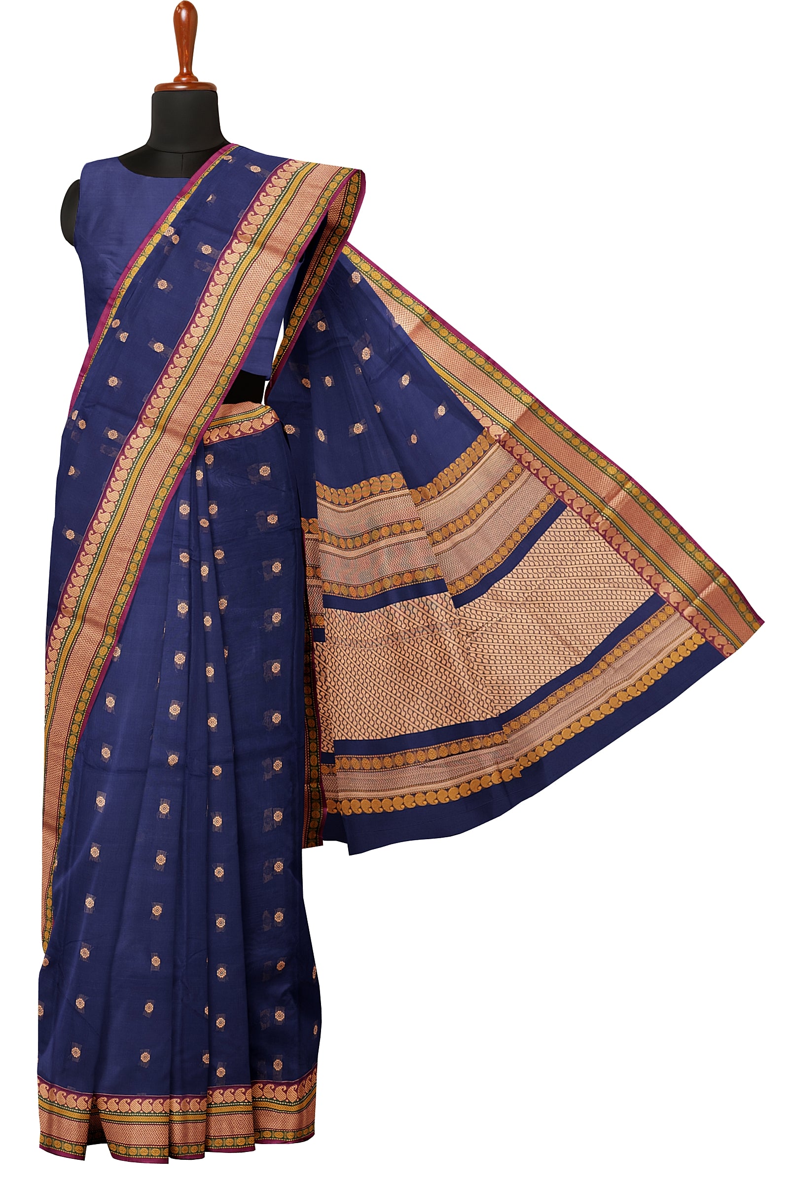 - Saree Details : Pallu – Rich Pallu, Material – 100% Compact Combed Cotton, Work Type – Thread Woven Work, Cotton Thread Count – Single 80’s.