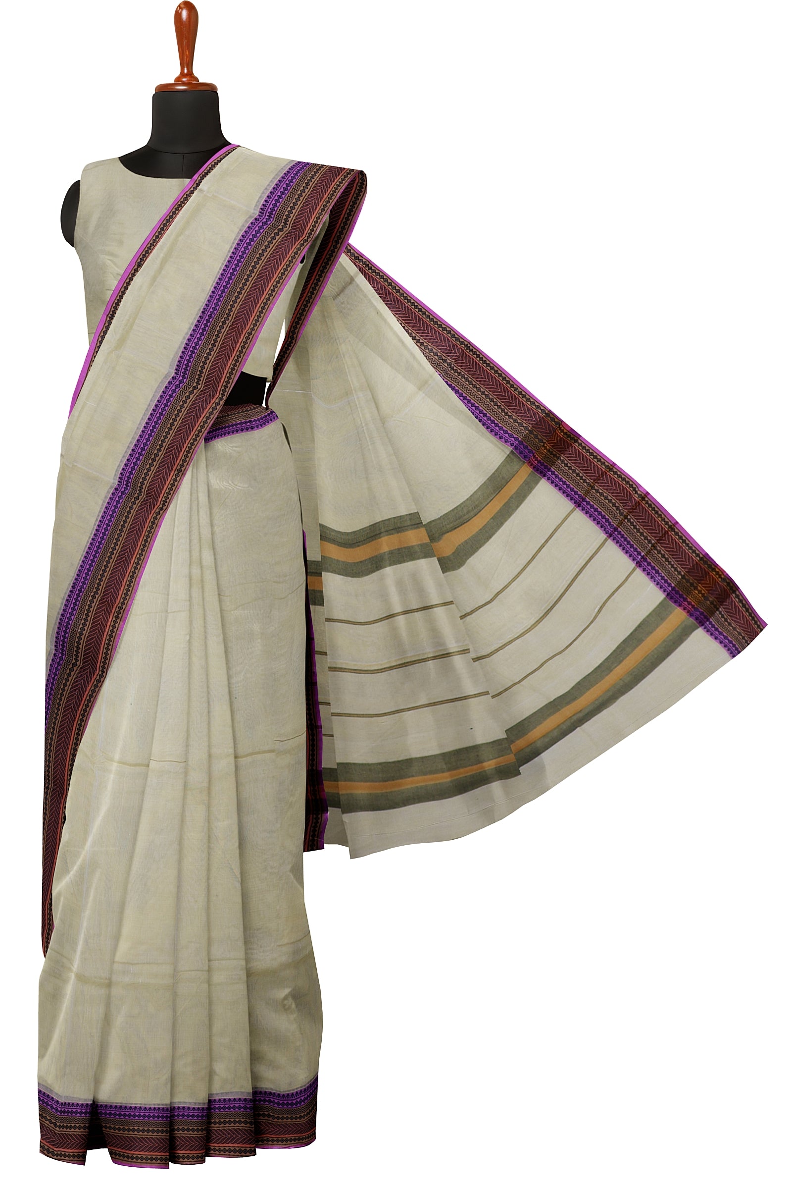 - Saree Details : Pallu – Seer Pallu, Material – 100% Compact Combed Cotton, Work Type – Thread Woven Work, Cotton Thread Count – Single 80’s.